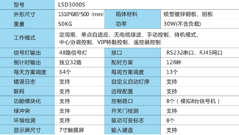 LSD3000S型交通信號(hào)控制機(jī)采用,穩(wěn)定、可靠的模塊化多處理器、多總線系統(tǒng)結(jié)構(gòu)。采用高速ARM控制器及大規(guī)模集成電路,實(shí)時(shí)運(yùn)算道路交通信息,如道路交通狀態(tài)、道路車流量。全部信號(hào)機(jī)可以組成城城網(wǎng),完成于指揮中心信息交換。根據(jù)城市交通模型進(jìn)行云計(jì)算,計(jì)算數(shù)據(jù)。帶有一塊7寸液晶觸摸顯示屏,和一個(gè)數(shù)字鍵盤(pán)。